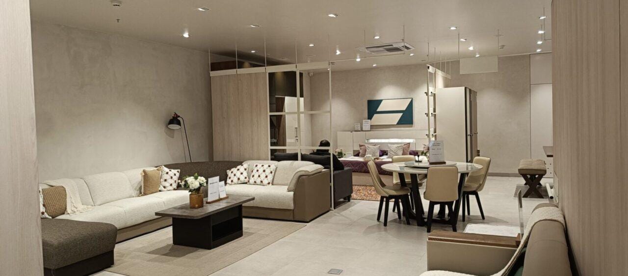 Sparrow successfully completed a comprehensive turnkey interior execution for Godrej Interio, delivering a 3,150 sq. ft. modern retail space at JMD Mall.